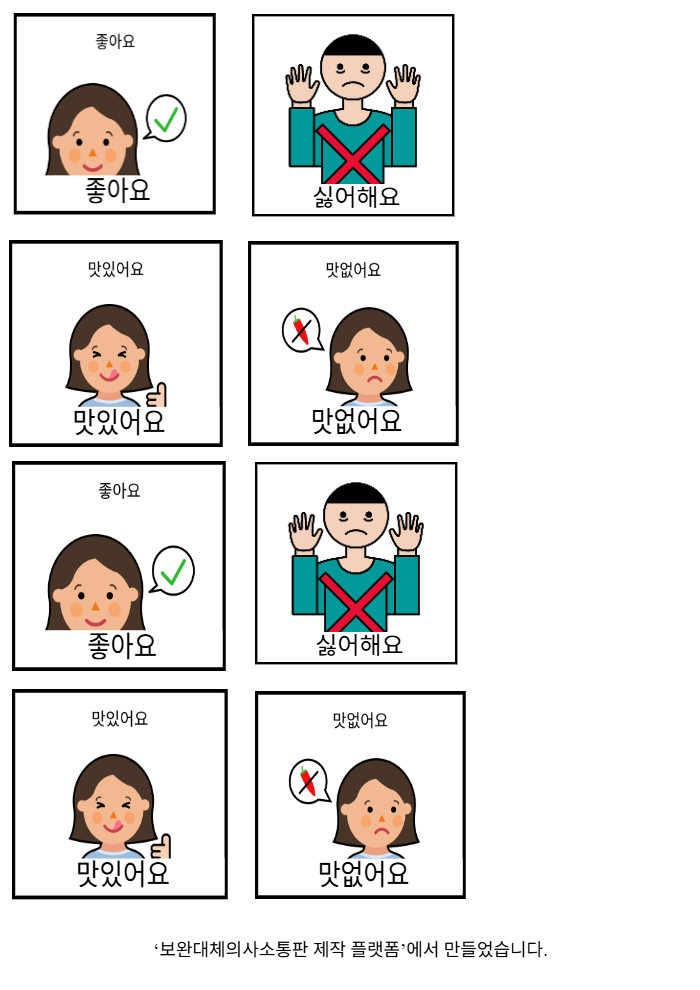 좋아요,싫어해요,맛있어요,맛없어요,좋아요,싫어해요,맛있어요,맛없어요