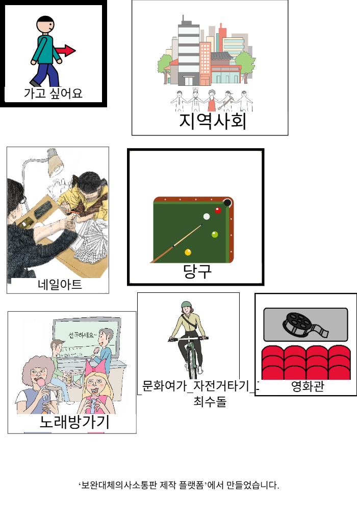 가고 싶어요,지역사회,네일아트,당구,노래방가기,문화여가_자전거타기_그림 최수돌,영화관