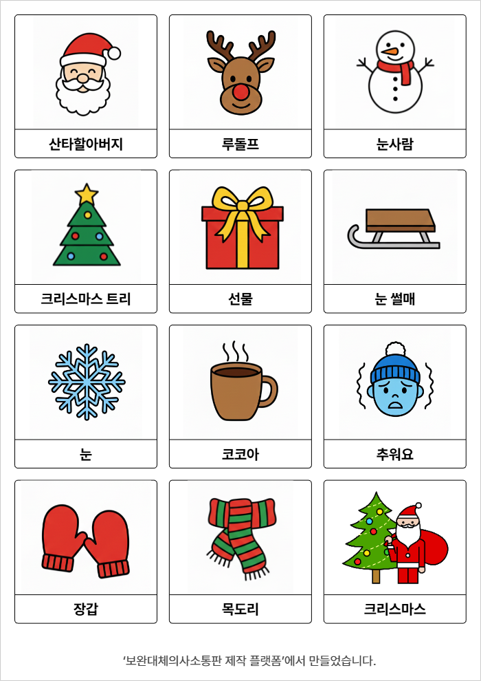 산타할아버지,루돌프,눈사람,크리스마스 트리,선물,눈 썰매,눈,코코아,추워요,장갑,목도리,크리스마스윤수빈25/12/24크리스마스