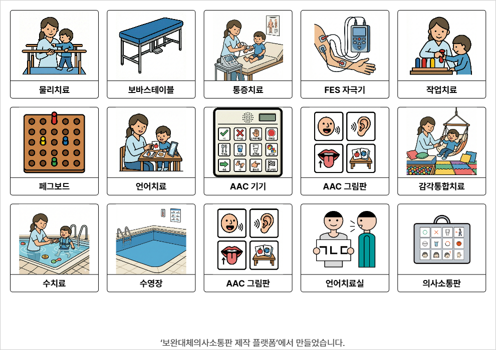AAC 그림판,AAC 기기,수영장,FES 자극기,언어치료실,의사소통판,병원,물리치료실윤수빈26/01/19재활치료