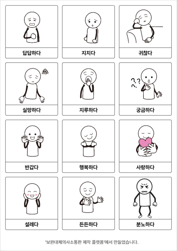 형,누나,가족,아들,답답하다,지치다,귀찮다,지루하다,미안하다,편안하다,궁금하다,무섭다,반갑다,행복하다,막막하다,화나다수팔25/09/29성인간호학실습
