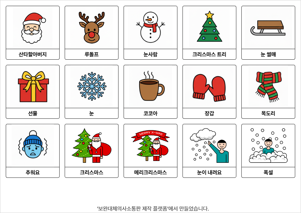 산타할아버지,루돌프,눈사람,크리스마스 트리,선물,눈 썰매,눈,코코아,추워요,장갑,목도리,크리스마스윤수빈25/12/24크리스마스