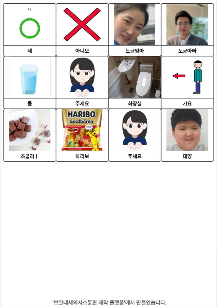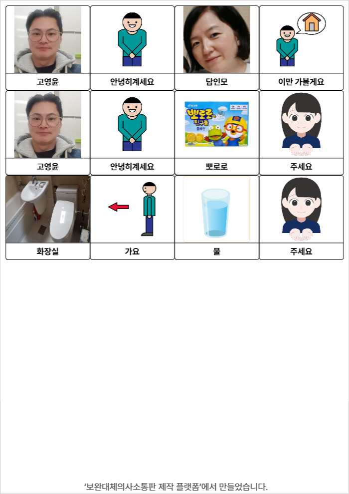 고영윤,안녕하세요,담인모,다녀왔습니다,고영윤,안녕히계세요,뽀로로,주세요,화장실,가요,물,주세요고영윤25/10/14담인 AAC
