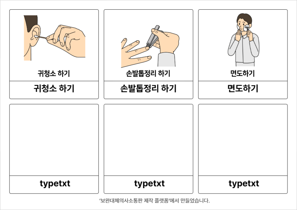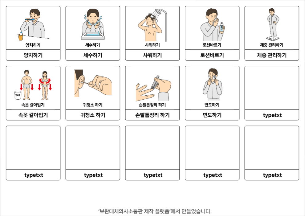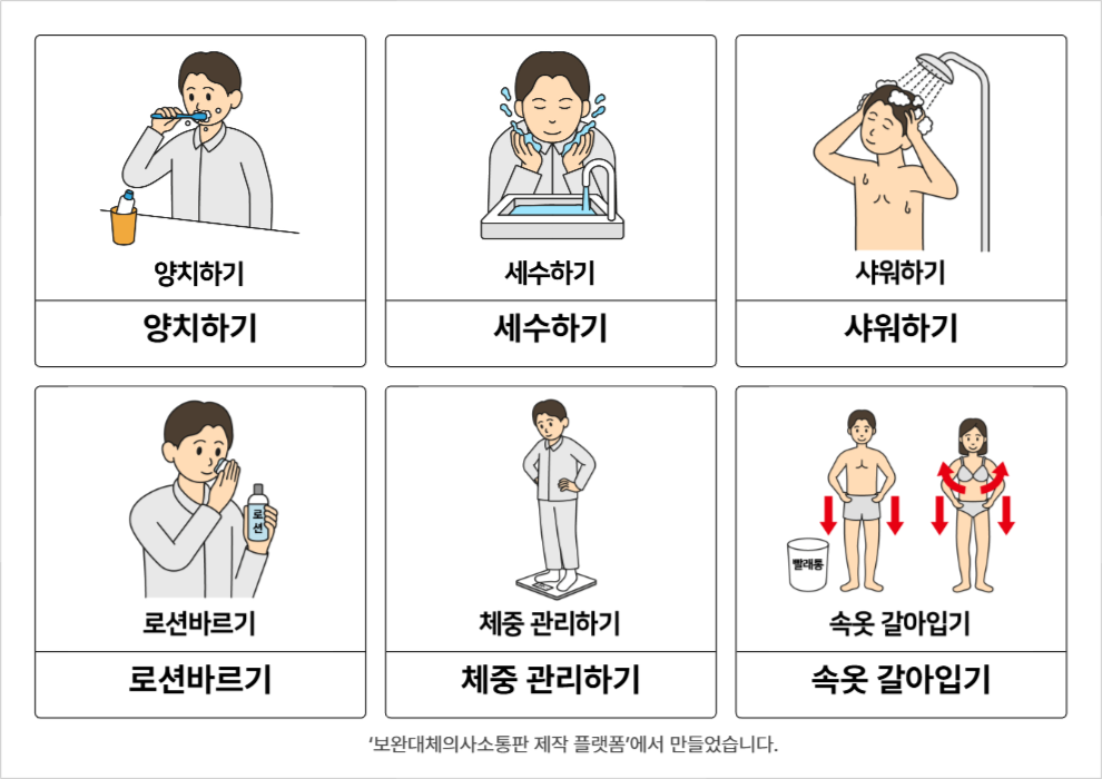 양치하기,세수하기,샤워하기,로션바르기,체중 관리하기,속옷 갈아입기,귀청소 하기,손발톱정리 하기,면도하기윤수빈26/03/18개인위생관리