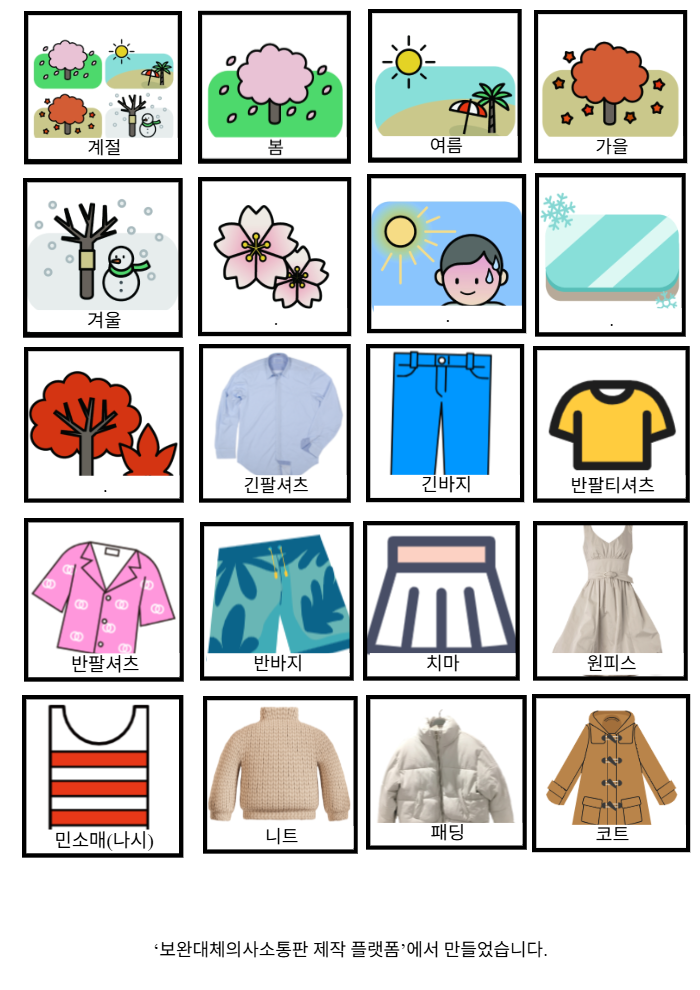 계절,봄,여름,가을,겨울,벚꽃,.,.,.,.,긴팔셔츠,긴바지,반팔티셔츠,반팔셔츠,반바지,치마,원피스,민소매(나시),니트,패딩,코트김수경26/03/13계절&옷차림