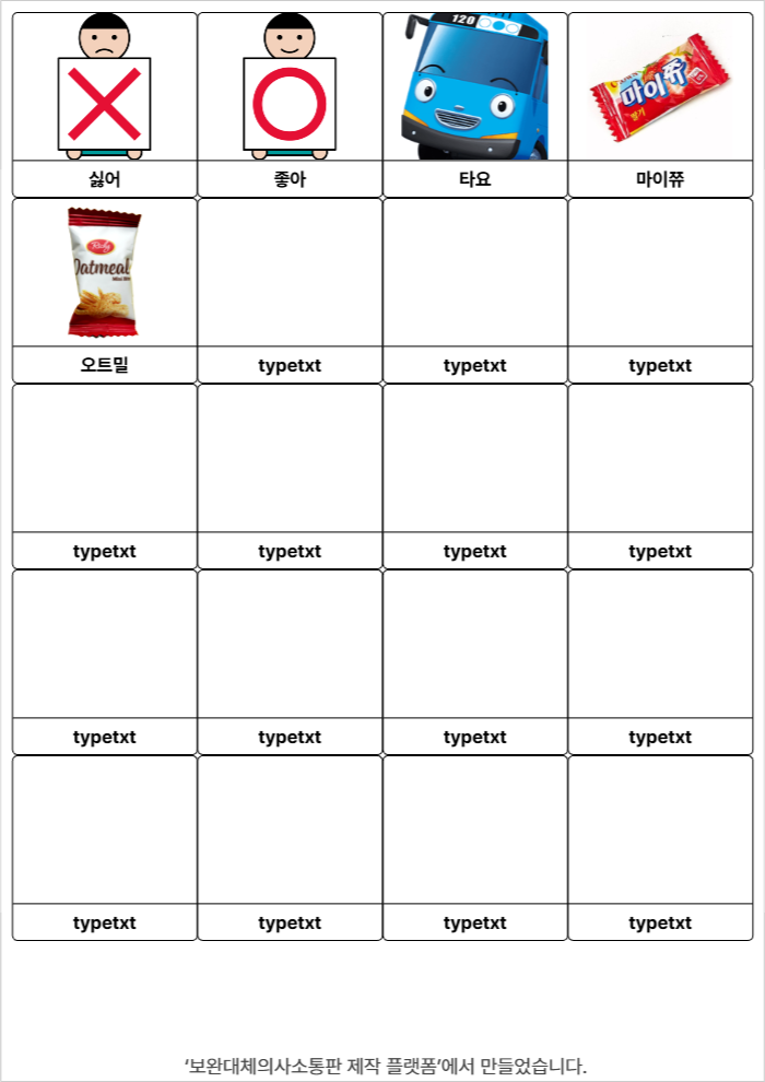 빵,과자,라면,공부,휴대폰,물,주세요,포도,먹고싶어요,화장실,화장실 가고싶어요,학교,창문 열어요,이거 뭐에요?,배 아파요,이 아파요정지민26/02/23