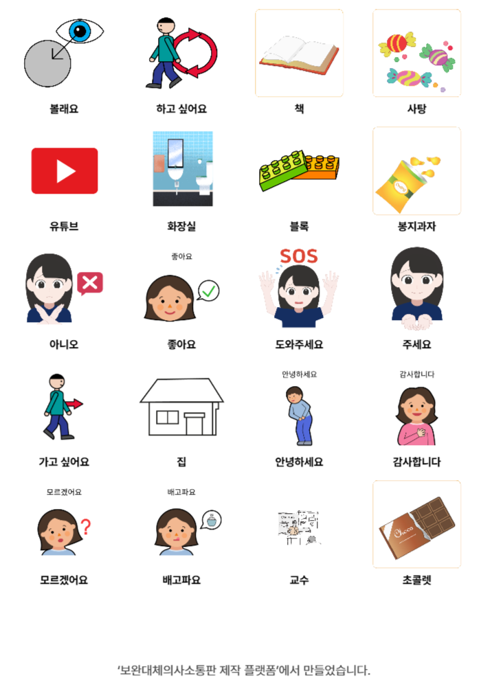 보여요,하고 싶어요,책,사탕,유튜브,화장실,블록,봉지과자,아니오,좋아요,도와주세요,주세요,가고 싶어요,집,안녕하세요,감사합니다,모르겠어요,배고파요,교수,초콜렛유특2325/12/01